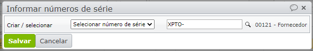 2) Na janela aberta, há duas opções: criar um número de série novo ou selecionar um já cadastrado.