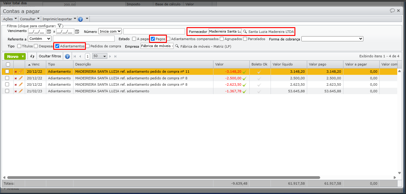 - Como consultar adiantamentos pagos em aberto do fornecedor?