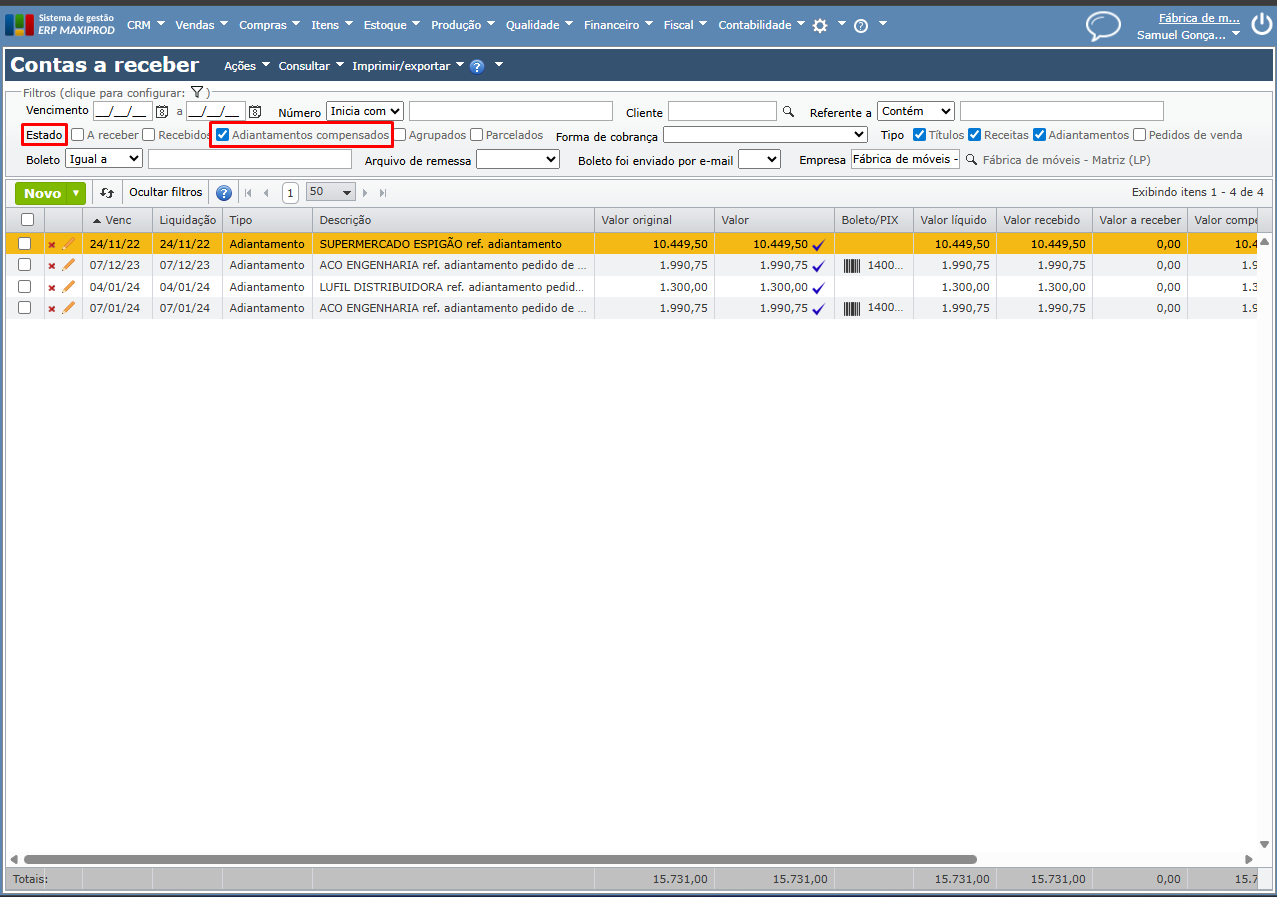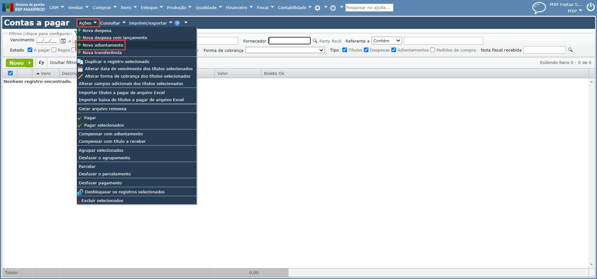 Veja, abaixo, como criar adiantamentos de clientes e para fornecedores no ERP MAXIPROD:
