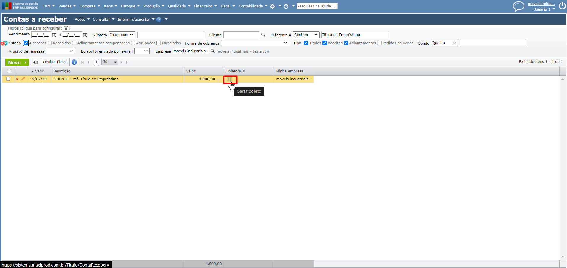 Observação: se o boleto já foi registrado na instituição bancária, seu cancelamento deve ser feito em conjunto com o banco, pois o MAXIPROD não cancela boletos já registrados.