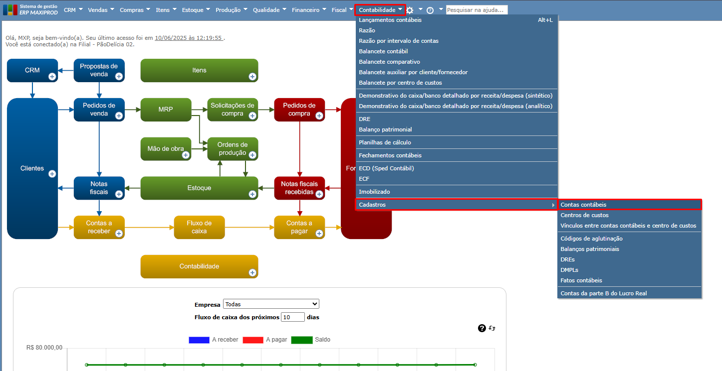 1) Acesse “Contabilidade > Cadastros > Contas contábeis”.