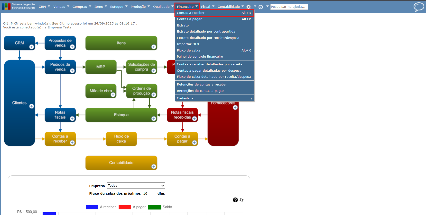 Dica: verifique sempre a empresa logada antes de qualquer lançamento financeiro. Lembre-se de que cada empresa (CNPJ) tem sua própria contabilidade.