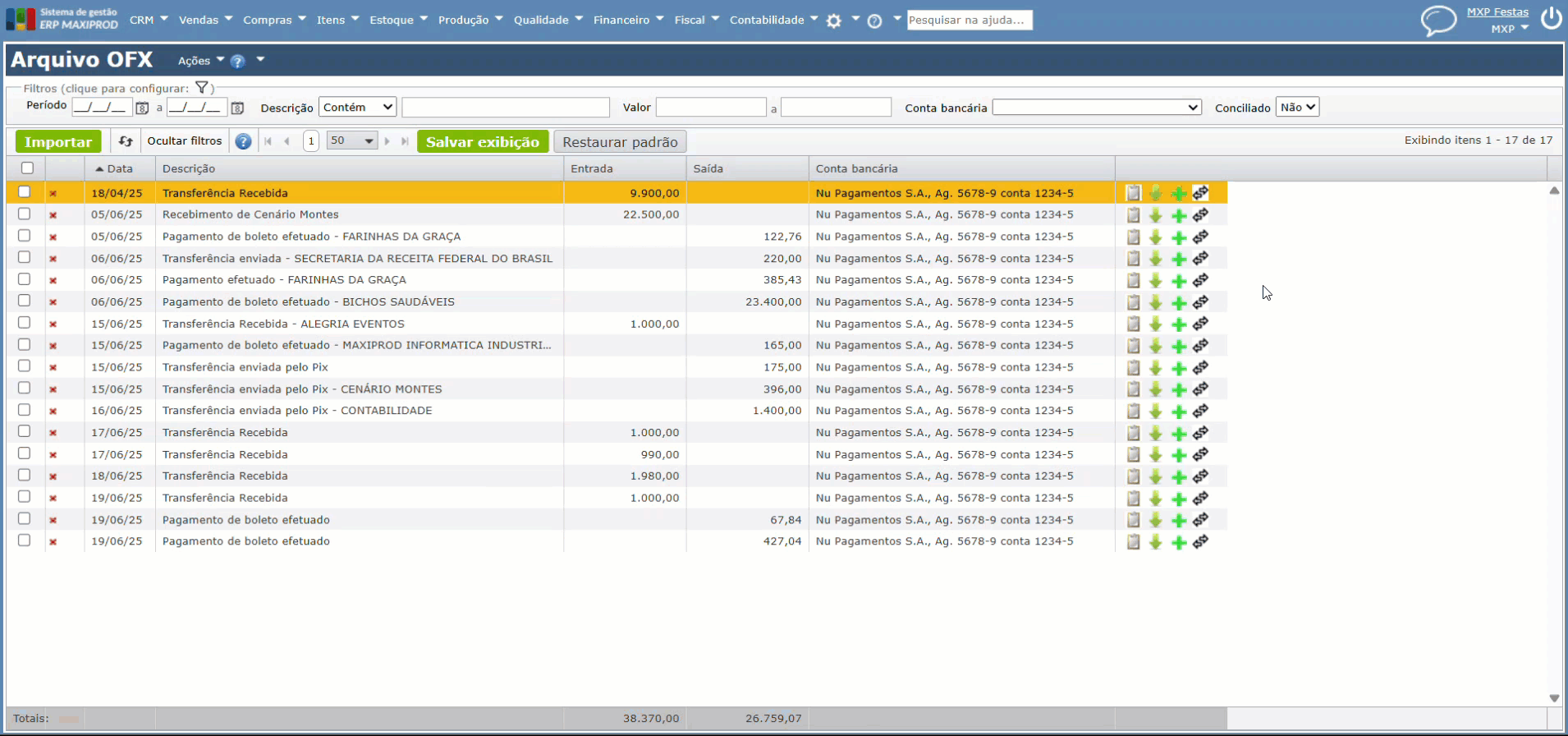 - Como conciliar título a receber/pagar com mais de um registro de OFX?