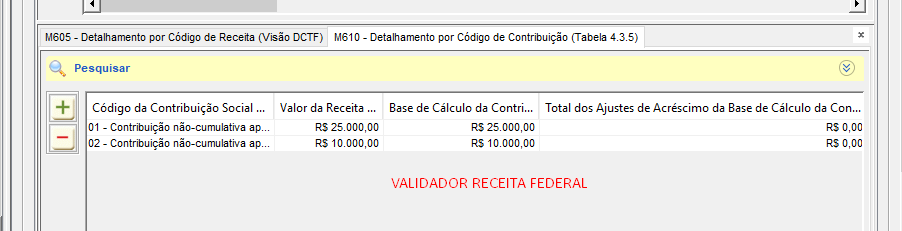 Detalhamento das Contribuições por Código de Contribuição (registro M210 do PIS e registro M610 do COFINS)