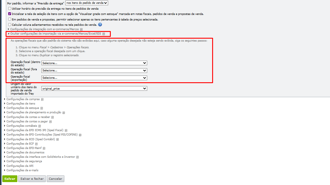 - Como configurar as operações fiscais preferenciais?