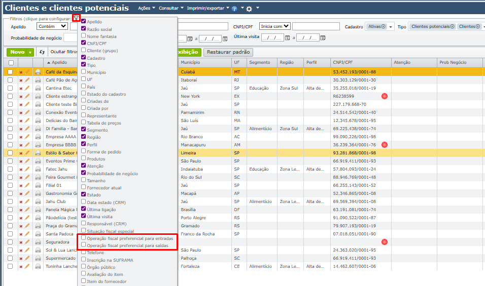 - Como filtrar as operações fiscais preferenciais das empresas?