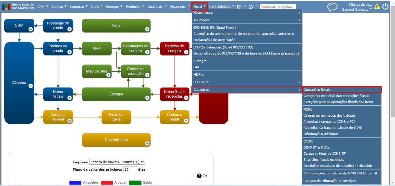1) Vá ao menu “Fiscal > Cadastros > Operações fiscais”.