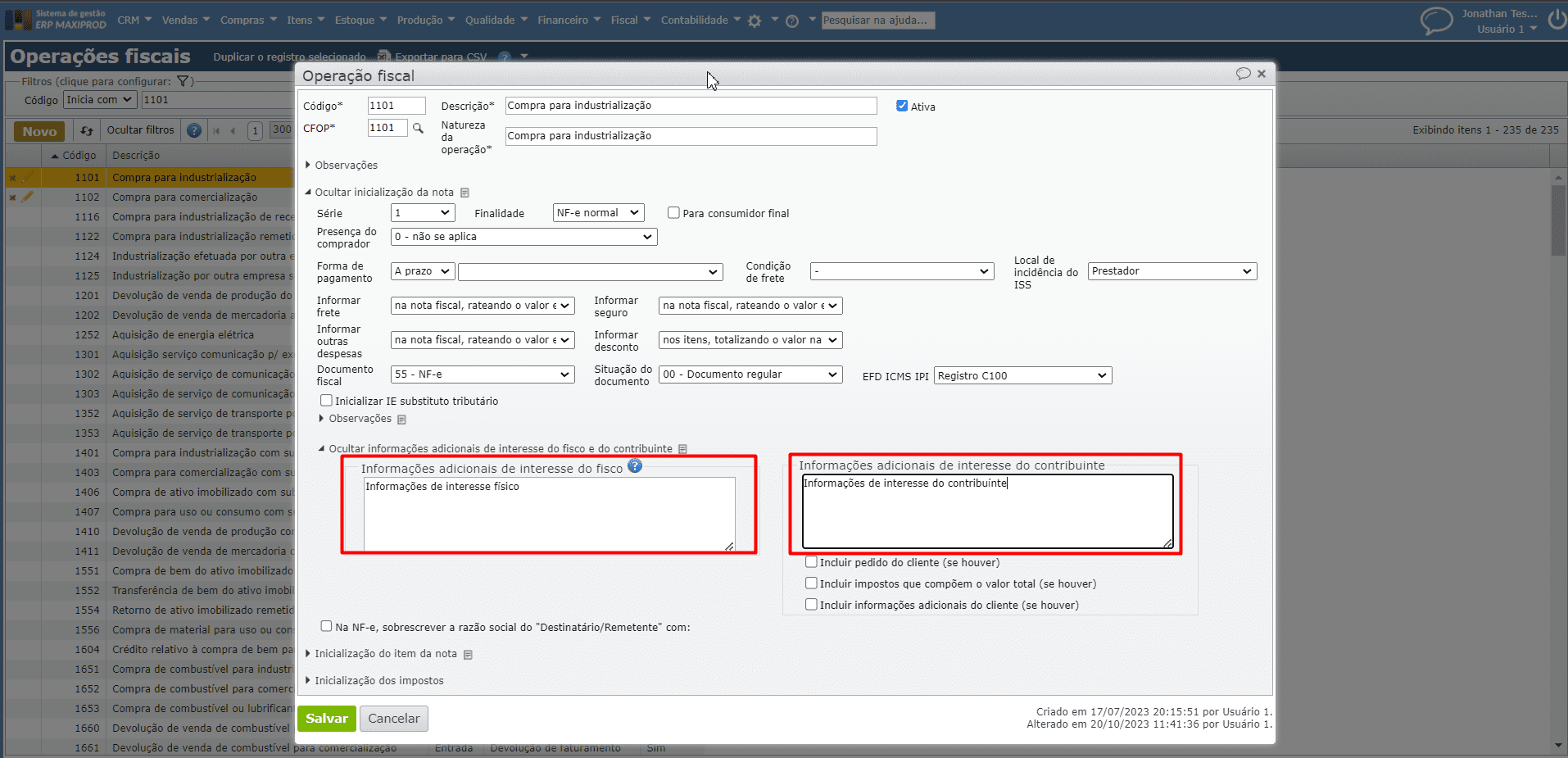 - Como fixar informações adicionais de interesse do fisco e do contribuinte na operação fiscal