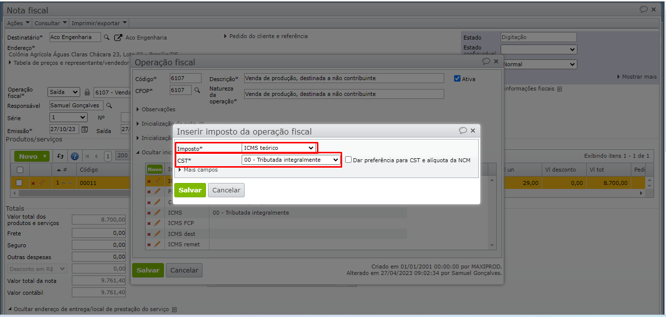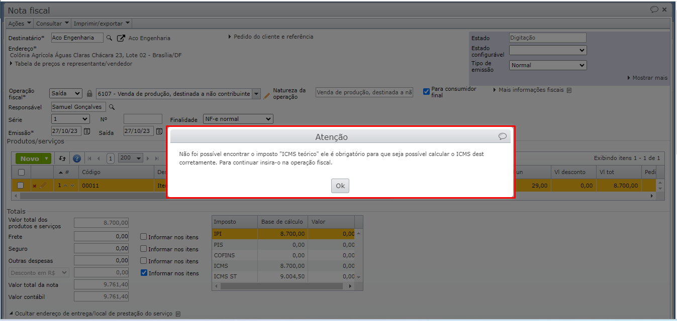 “Não foi possível encontrar o imposto “ICMS teórico” ele é obrigatório para que seja possível calcular o ICMS dest corretamente. Para continuar insira-o na operação fiscal.”