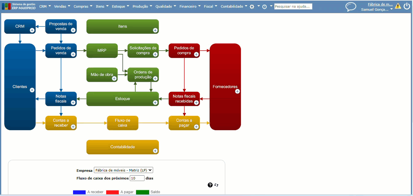 1) Acesse o menu superior “Vendas > Notas fiscais” para NF emitidas, ou “Compras > Notas fiscais recebidas” para NFs recebidas.