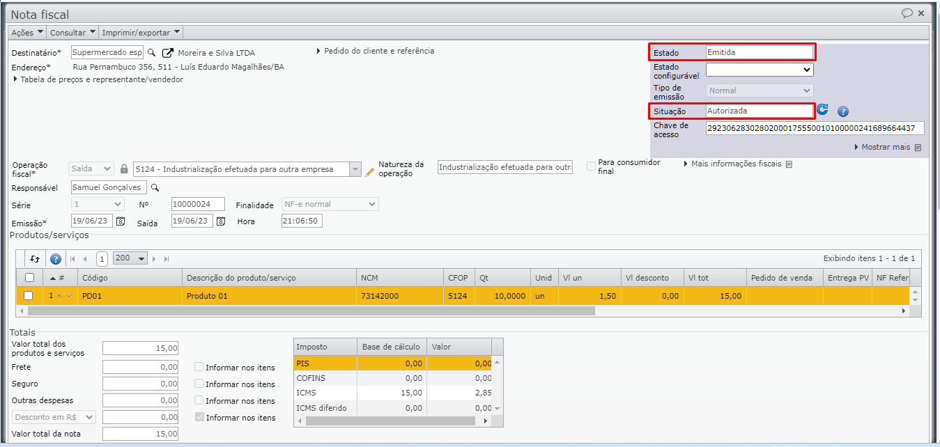 2) Nas NFs emitidas, o estado da NF-e precisa ser “Emitida” e a situação “Autorizada”. Para saber mais sobre a diferença entre estado e situação das notas fiscais, clique aqui.