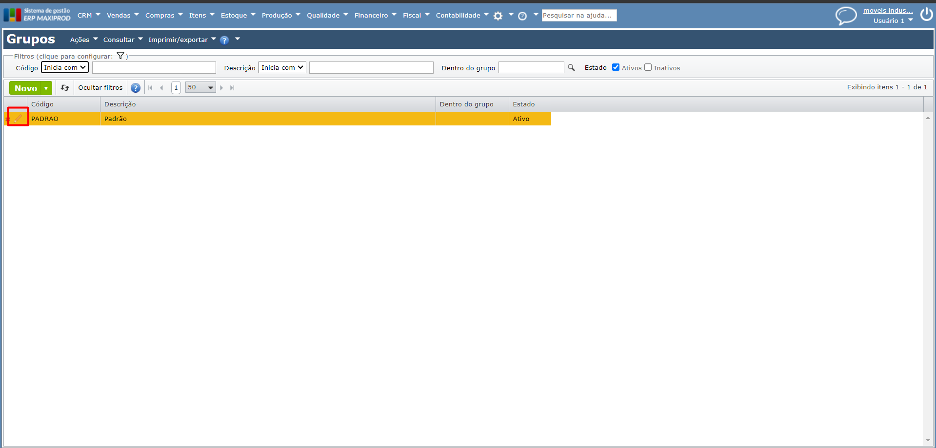 2) Em seguida, identifique o grupo onde os itens estão inseridos e clique no ícone “lápis laranja” para abrir sua edição.