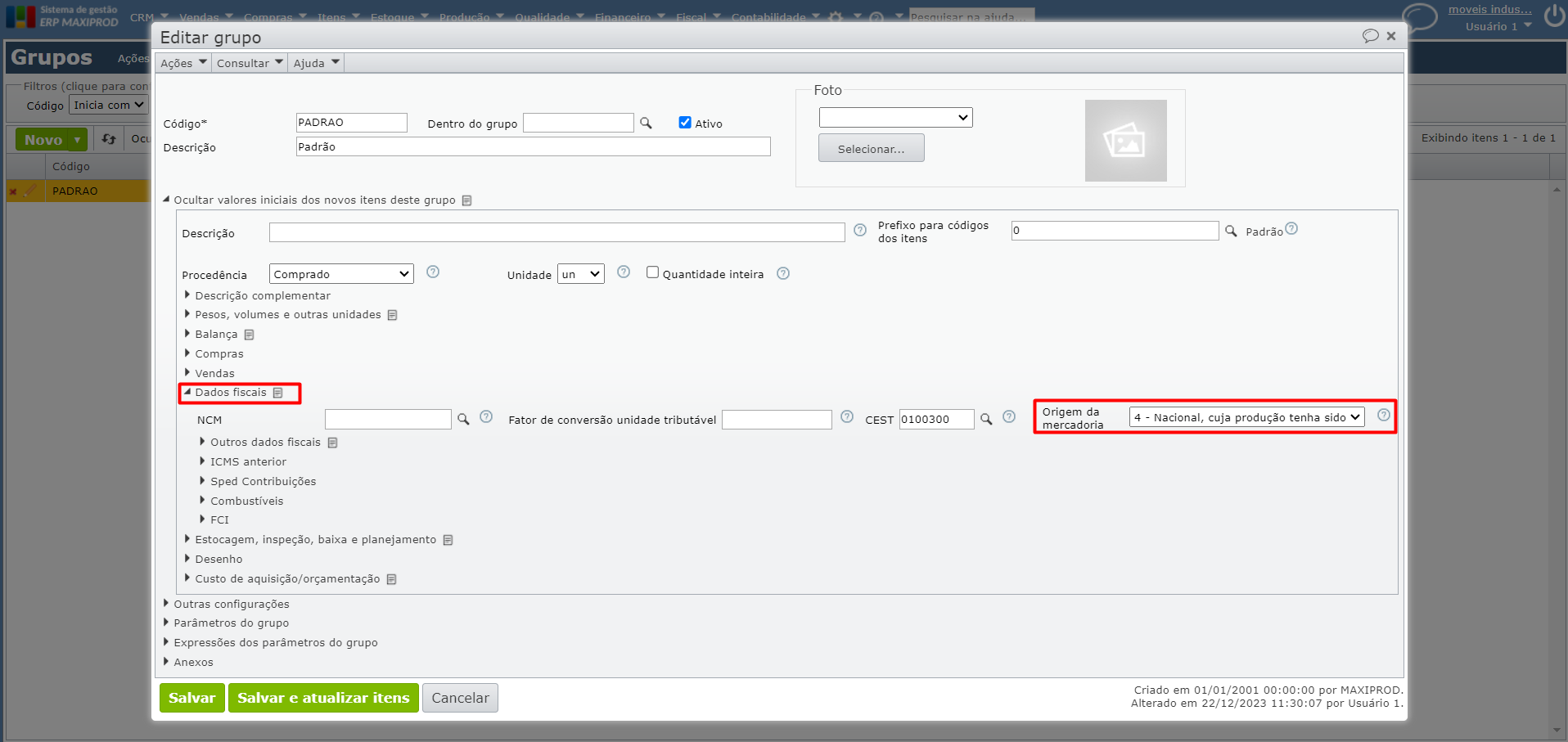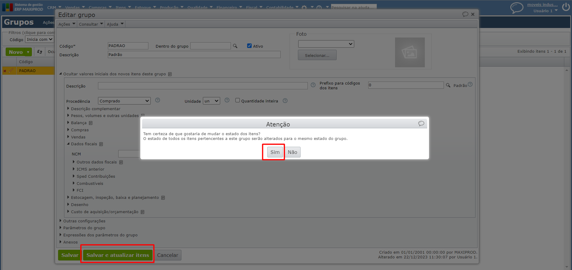 6) Deste modo, os itens vinculados ao grupo terão sua origem atualizados.