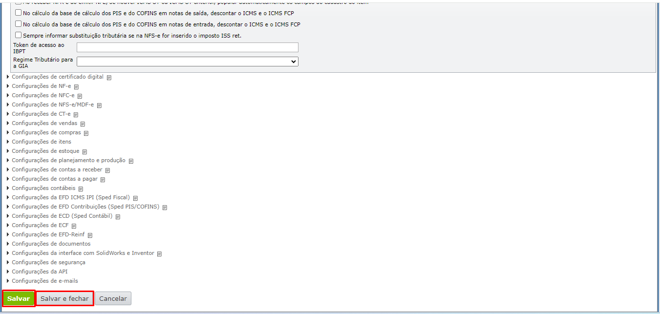 3) Navegue até o rodapé da tela de configurações e clique em “Salvar” ou “Salvar e fechar”.