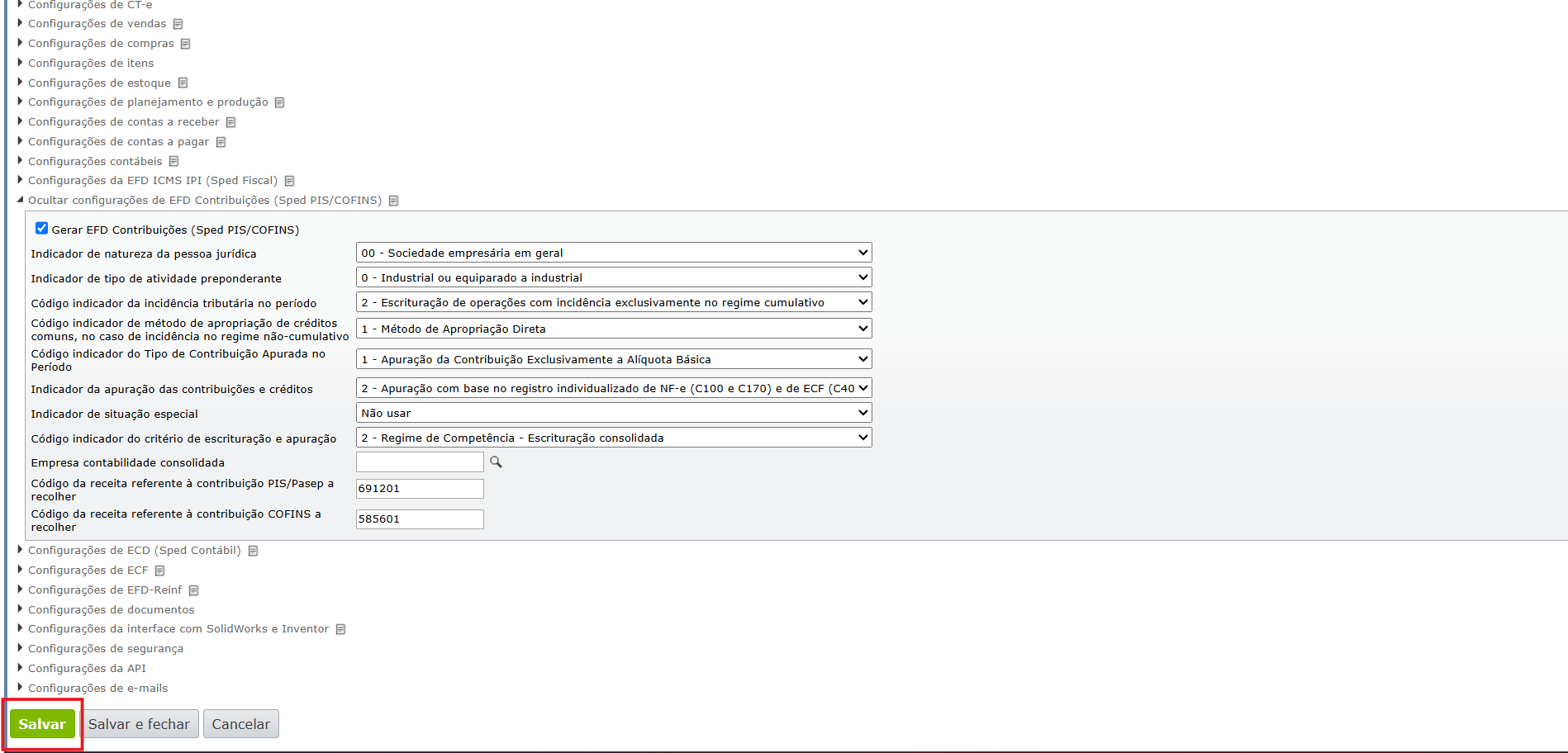 3) Salve as alterações feitas na configuração clicando no botão verde “Salvar”.