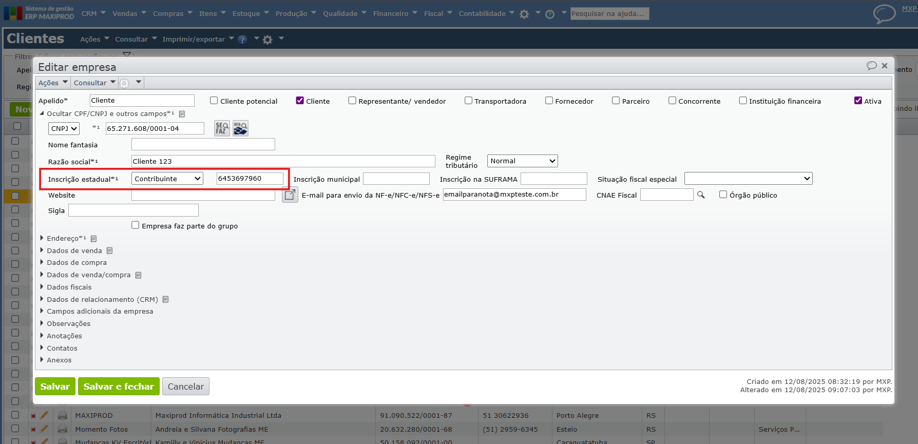 Observação: preste atenção ao padrão do IE da Unidade Federativa (UF) do seu cliente. Para saber sobre os tamanhos das IEs por UF e suas regras de validação, clique aqui.