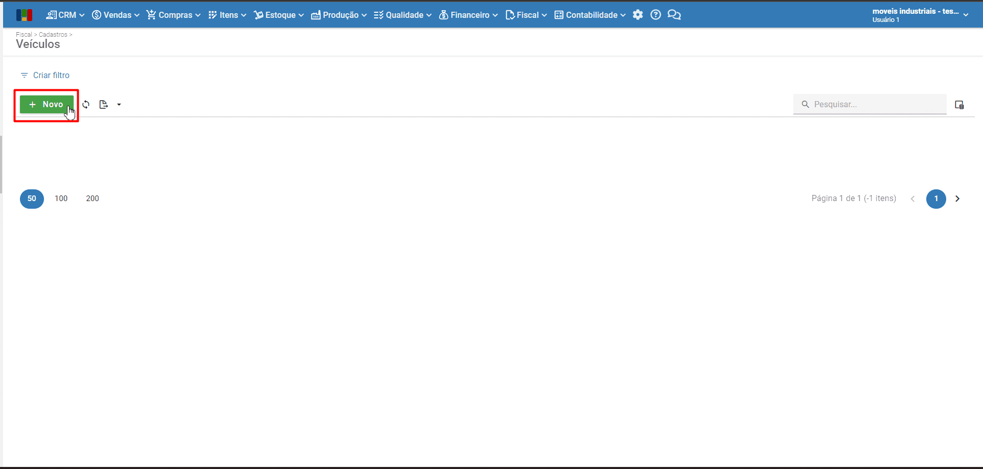 2) É aberta uma nova tela, onde é feito o cadastro de veículos, clique no botão verde “Novo“.