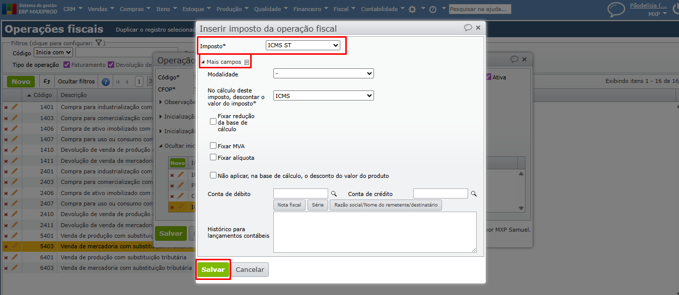 Atualmente, no ERP MAXIPROD, permite parametrizar o imposto ICMS ST somente na operação fiscal. Em casos onde a aplicação do ICMS ST varia conforme a NCM, é possível utilizarmos exceções fiscais para parametrizar o imposto.