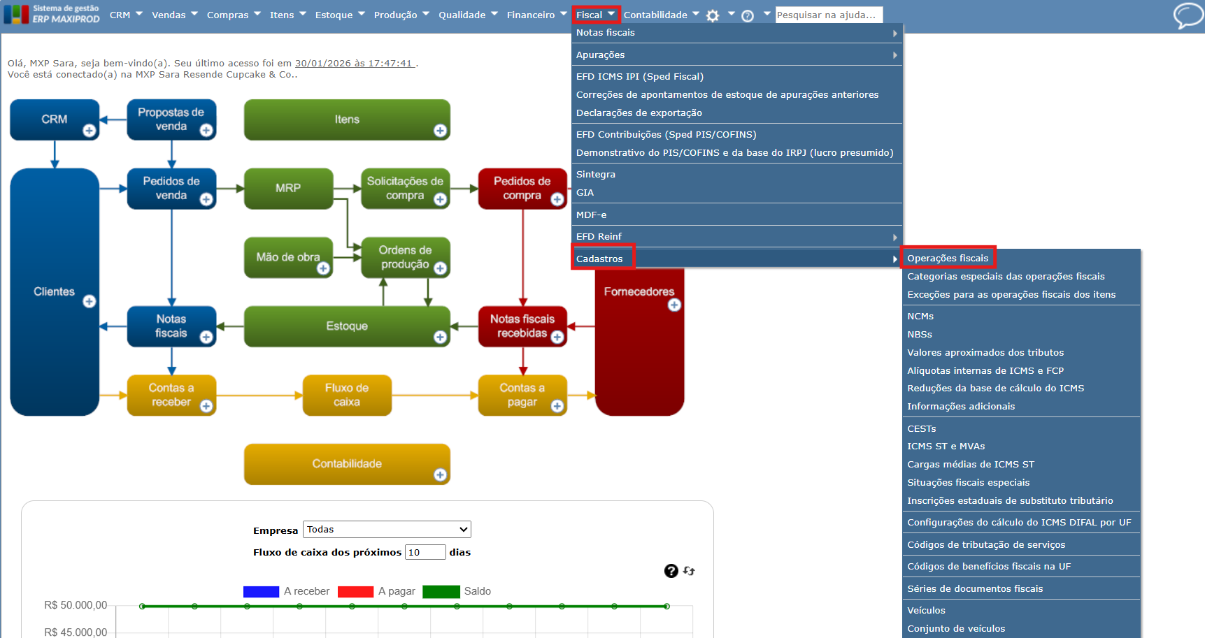 - Configuração das operações fiscais