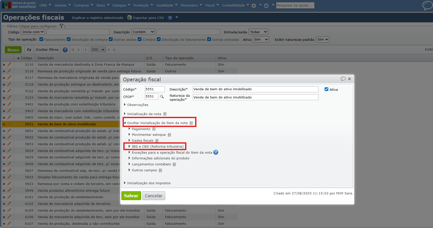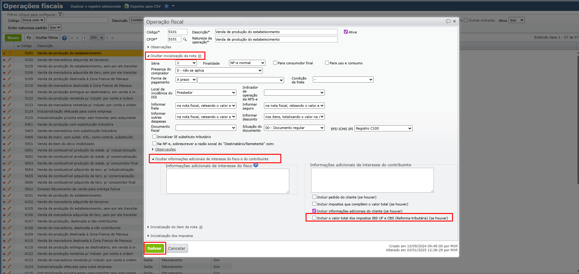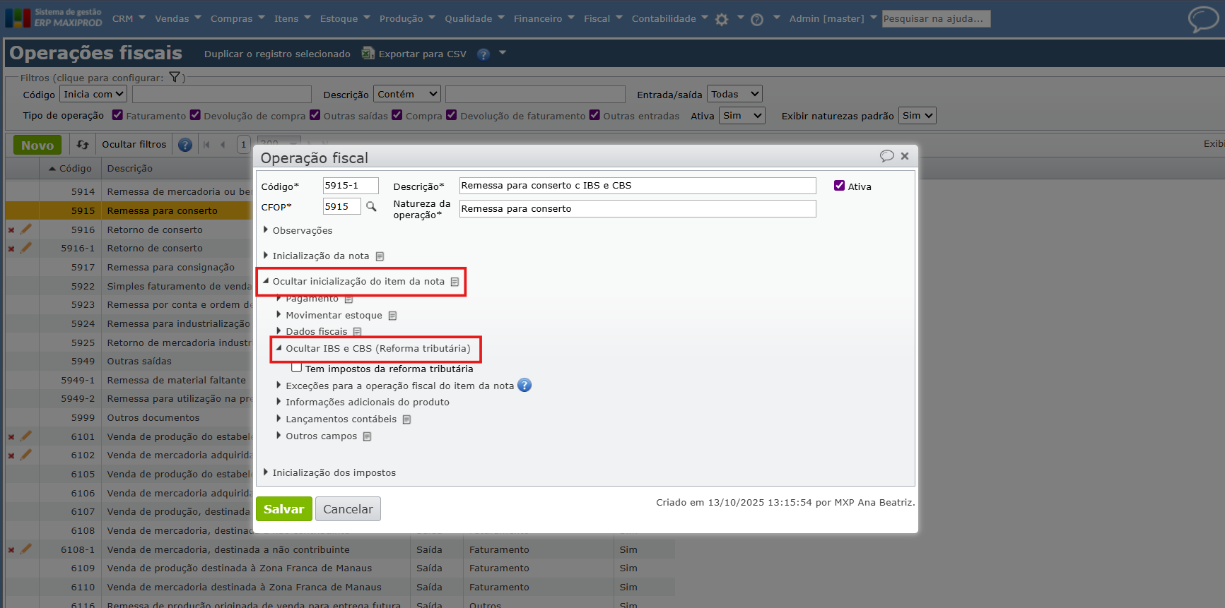 6) Os itens das notas fiscais, pedidos e propostas terão essas configurações herdadas da operação fiscal utilizada.