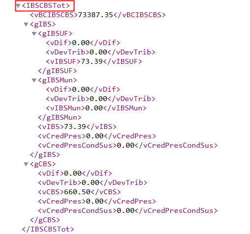 - Tag <IBSCBSTot>: totalizador do IBS/CBS no documento fiscal, somando os valores informados por item.