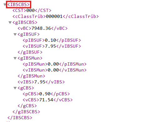 - Tag <IBSCBS>: corresponde às informações detalhadas do IBS/CBS para cada item.