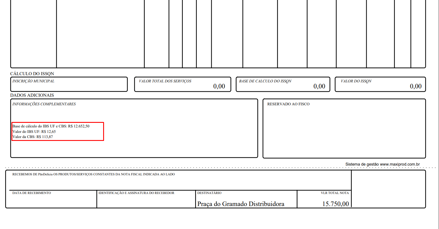 No entanto, a título informativo, o ERP MAXIPROD permite configurar para que os valores dos impostos IBS e CBS sejam informados no DANFE em “informações adicionais” automaticamente.