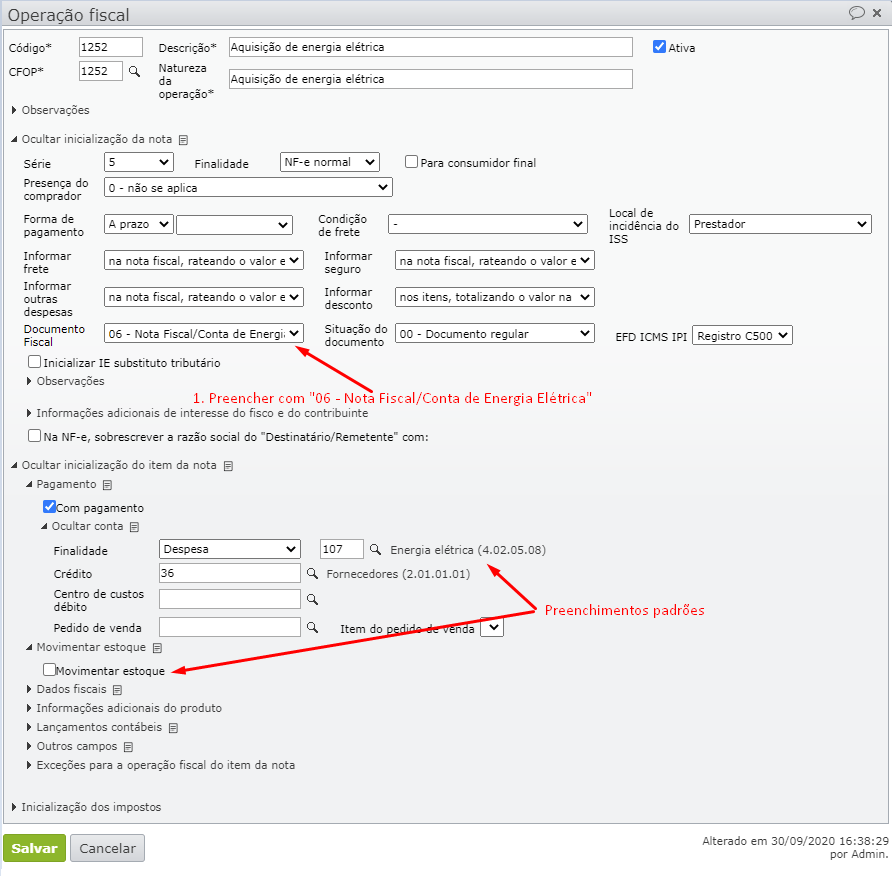 3.3) Preencha o campo “Operação fiscal” com a operação anteriormente alterada no passo 2