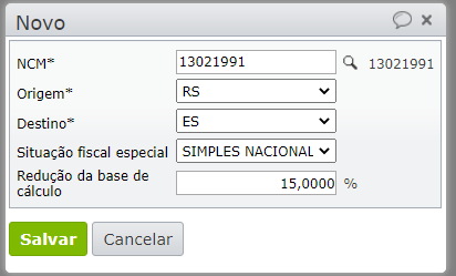 - a redução da base de cálculo do ICMS, que também é uma função da NCM e das UFs de origem e destino.