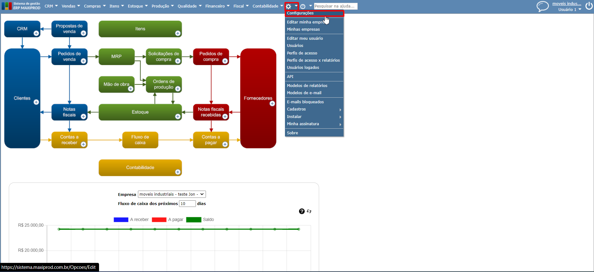 1) Acesse o menu “Roda dentada > Editar minha empresa”.