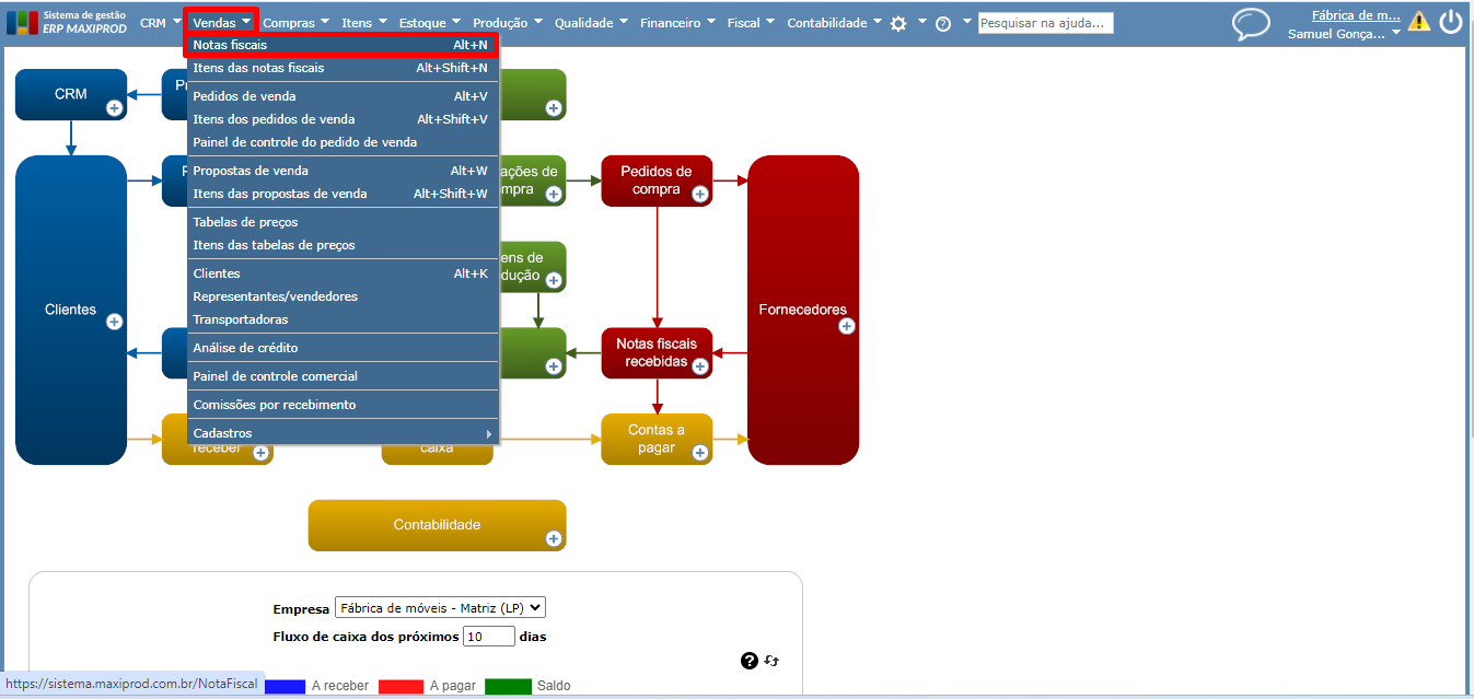 1) Acesse o menu superior “Vendas > Notas fiscais”.