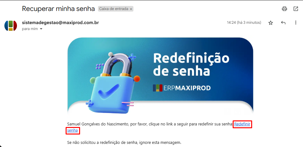 Será enviado um e-mail semelhante ao da imagem abaixo. Clique em “Redefinir senha”.