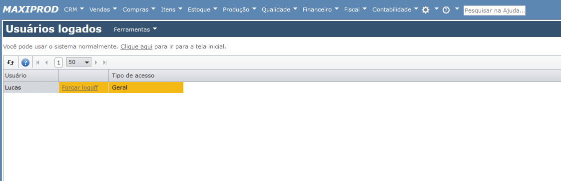 • O usuário “Lucas” estava logado no MAXIPROD.