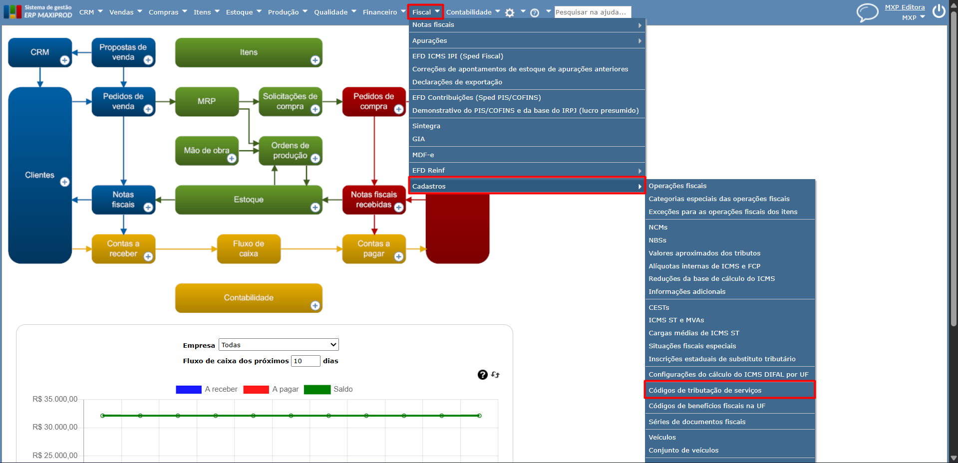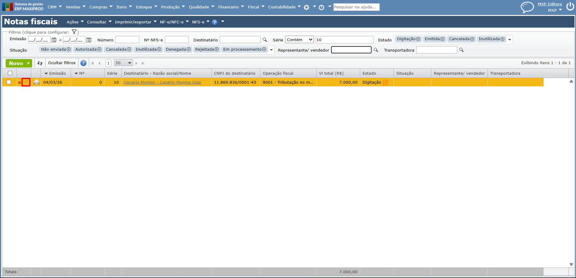 No ERP MAXIPROD, é possível gerar este grupo no XML de NFS-e, conforme os passos a seguir.