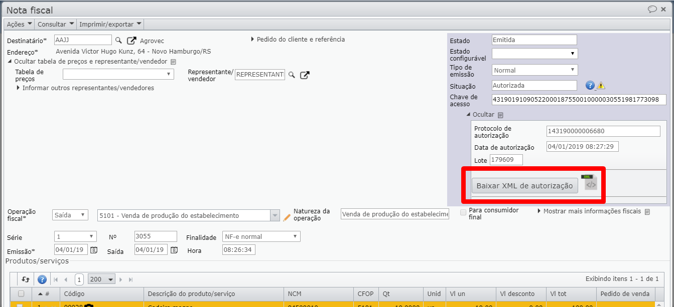 3) Clique em “Baixar XML de autorização”.