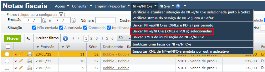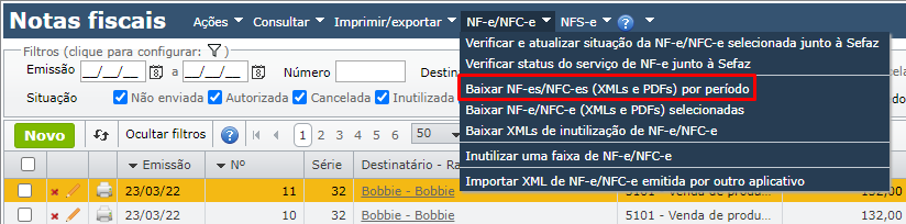 - Como baixar o XML e o PDF das notas fiscais de um período?