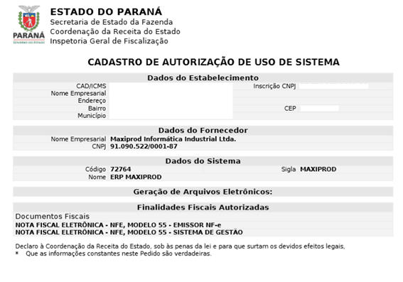 Habilitar software para emissão da NF-e no Paraná