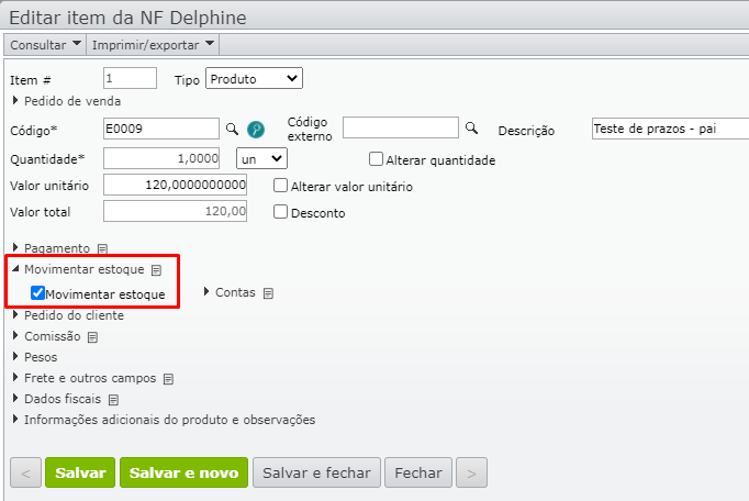 - Depois de desfazer a emissão da nota, edite cada um de seus itens, marcando a opção “Movimentar estoque”.