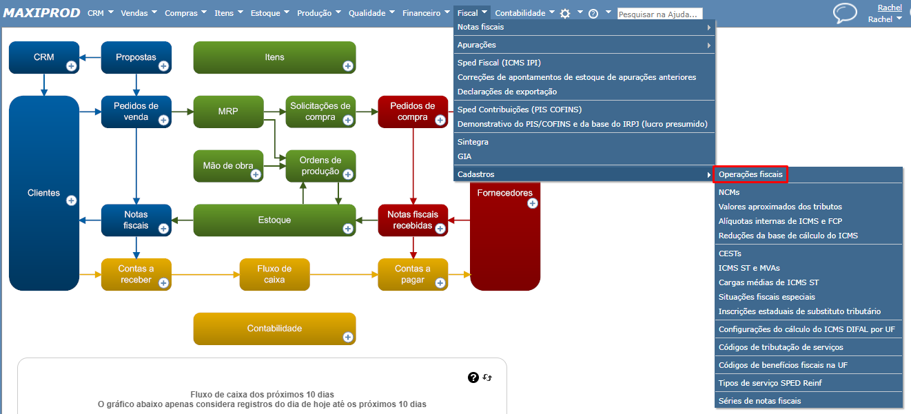 1) Vá ao menu “Fiscal” > “Cadastros” > “Operações fiscais”.