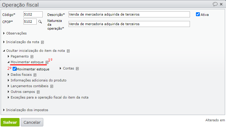 - Se estiver desmarcado, este é o motivo da nota fiscal não ter movimentado estoque.