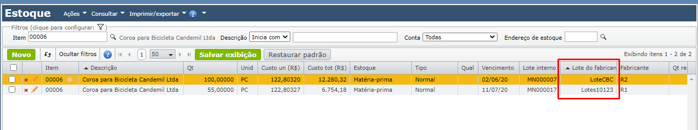 Para cadastrar um lote, clique em “Estoque > Lotes registrados” > botão “Novo”.
