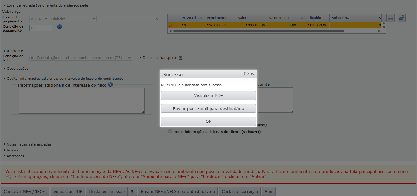 - Visualizar PDF: abre o DANFE da NF-e emitida.