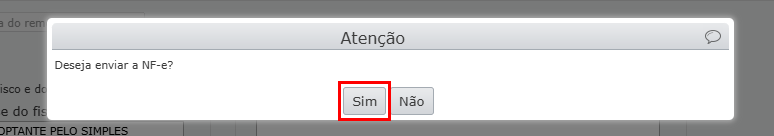 6) Se deseja enviar a NF-e em outro horário, clique em “Não” na mensagem de confirmação. Com isso, a NF pode ser fechada e salva, podendo ser enviada mais tarde com um clique no botão verde “Enviar”.