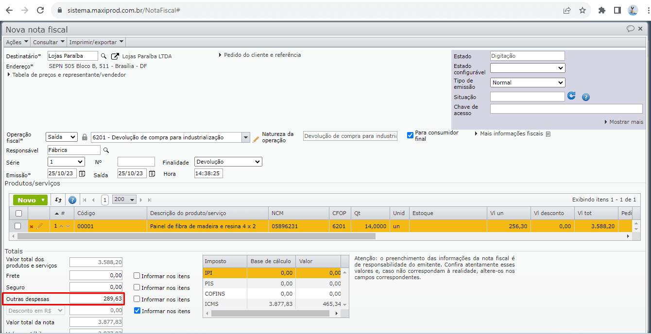 3) No entanto, o valor do IPI deve constar na nota, portanto o informe no campo “Outras despesas”. Veja abaixo as bases legais das instruções acima. Essas configurações são de responsabilidade do usuário e auxiliam no envio de NFs de devolução. Recomendamos consultar a área de contabilidade da sua empresa, antes do envio da NF-e.