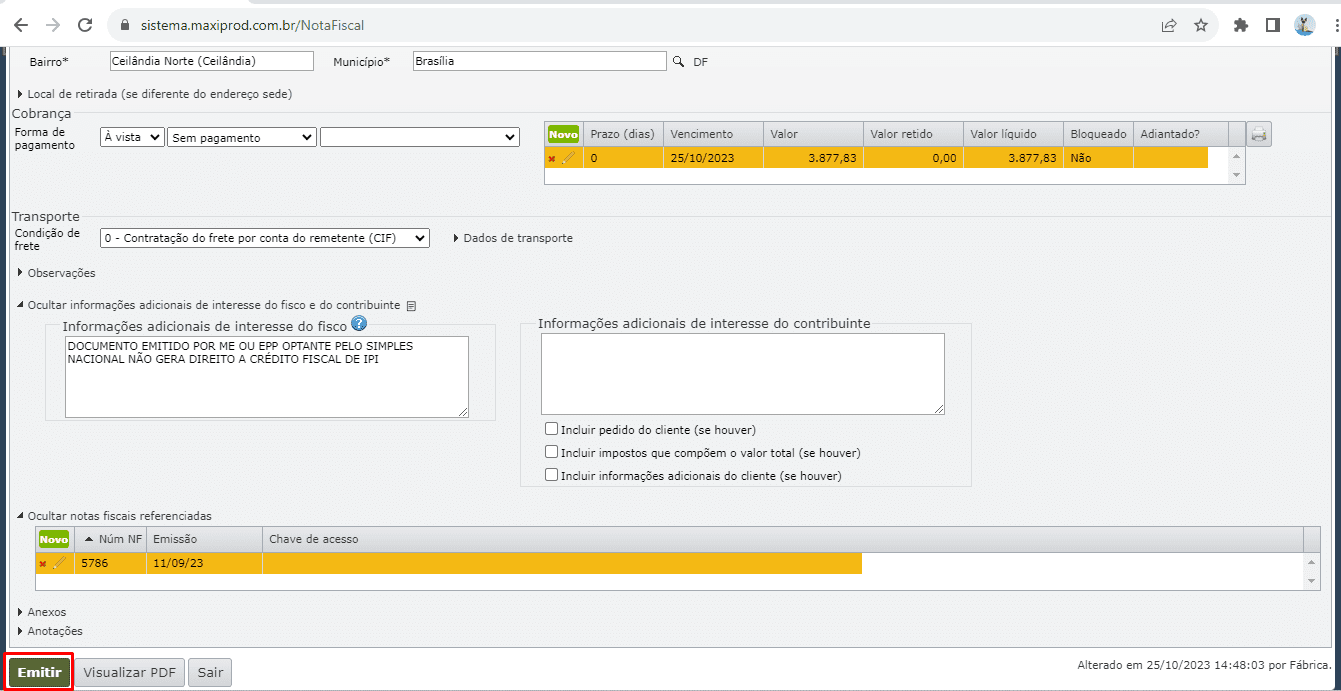 6) Agora a NF de devolução pode ser emitida e enviada para a Sefaz.