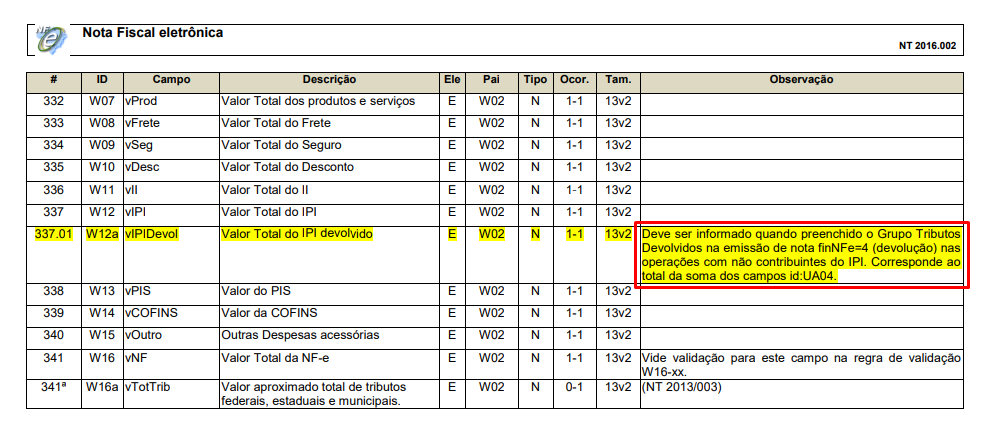 2) Para empresas não contribuintes do IPI (como é o caso de boa parte das empresas optantes pelo Simples Nacional), o valor do IPI devolvido não deve ser destacado no campo de IPI normal, mas sim informado apenas no campo específico de ‘IPI devolvido’, introduzido pela Nota Técnica 2016.002. O mesmo se aplica a empresas do regime normal (lucro real ou lucro presumido), e NÃO contribuintes do IPI.