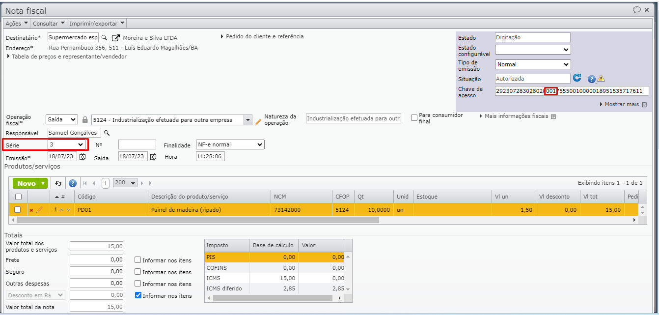 Se o usuário tentar emitir ou receber a NF, informando uma chave de acesso com a série diferente da série informada na edição da nota, o sistema retorna a mensagem “A série da nota fiscal difere da série contida na chave de acesso” e bloqueia o processo. Para corrigir, acerte a série da NF no sistema ou acerte a chave de acesso informada. Para saber mais sobre séries fiscais, clique aqui.