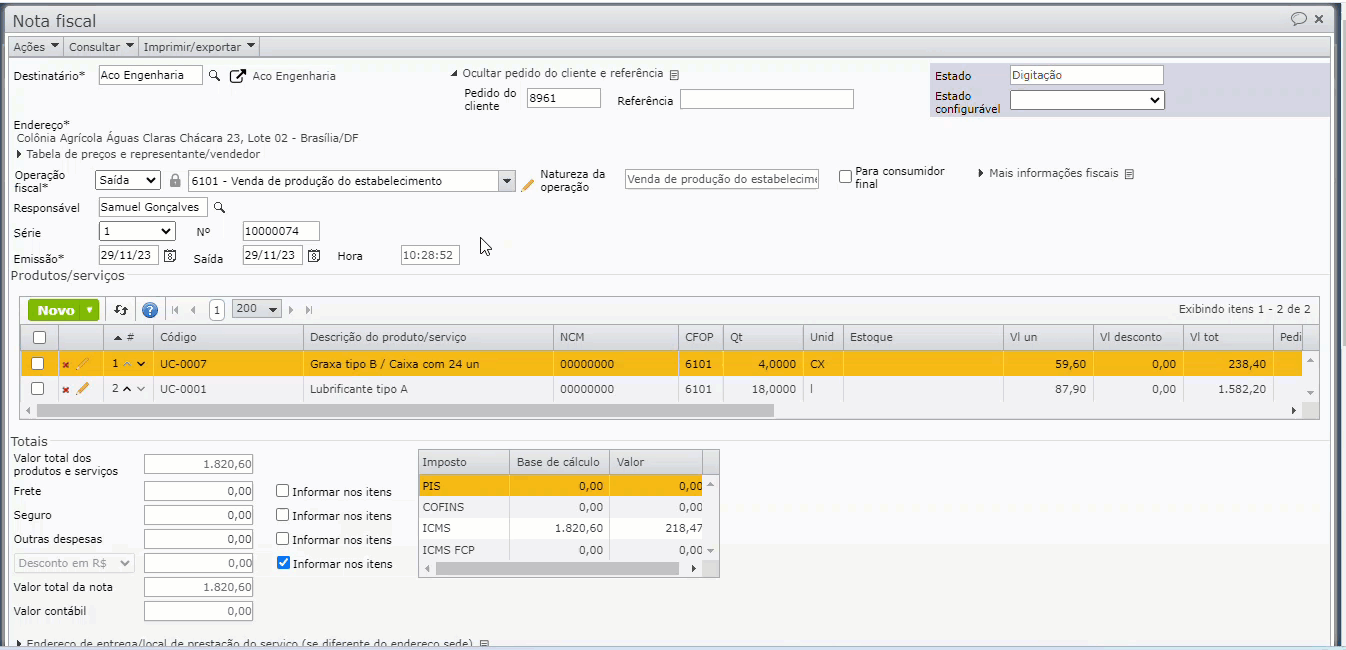 A numeração das notas fiscais é atribuída automaticamente conforme a configuração do “Próximo número” da série fiscal utilizada.