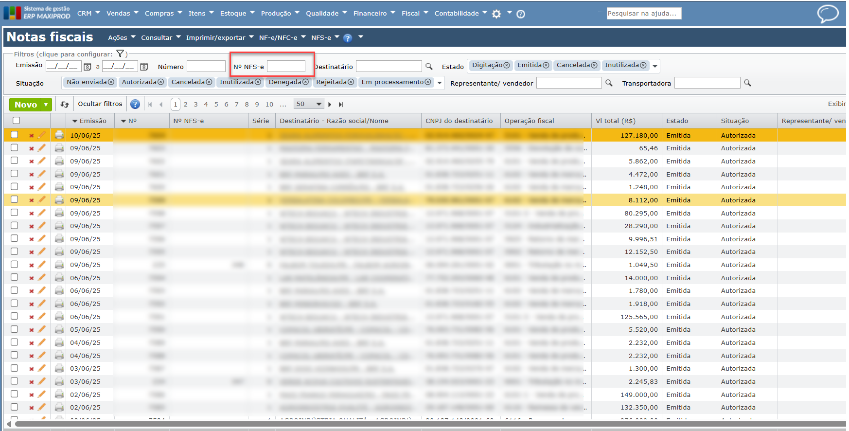 A Nota Fiscal de Serviços (NFS-e) pode ser cancelada diretamente pelo portal da prefeitura, e continuar com o status incorreto no sistema. Neste caso, é necessário atualizar manualmente a NFS-e no sistema. Para atualizar o status da NFS-e no sistema após o cancelamento na prefeitura: