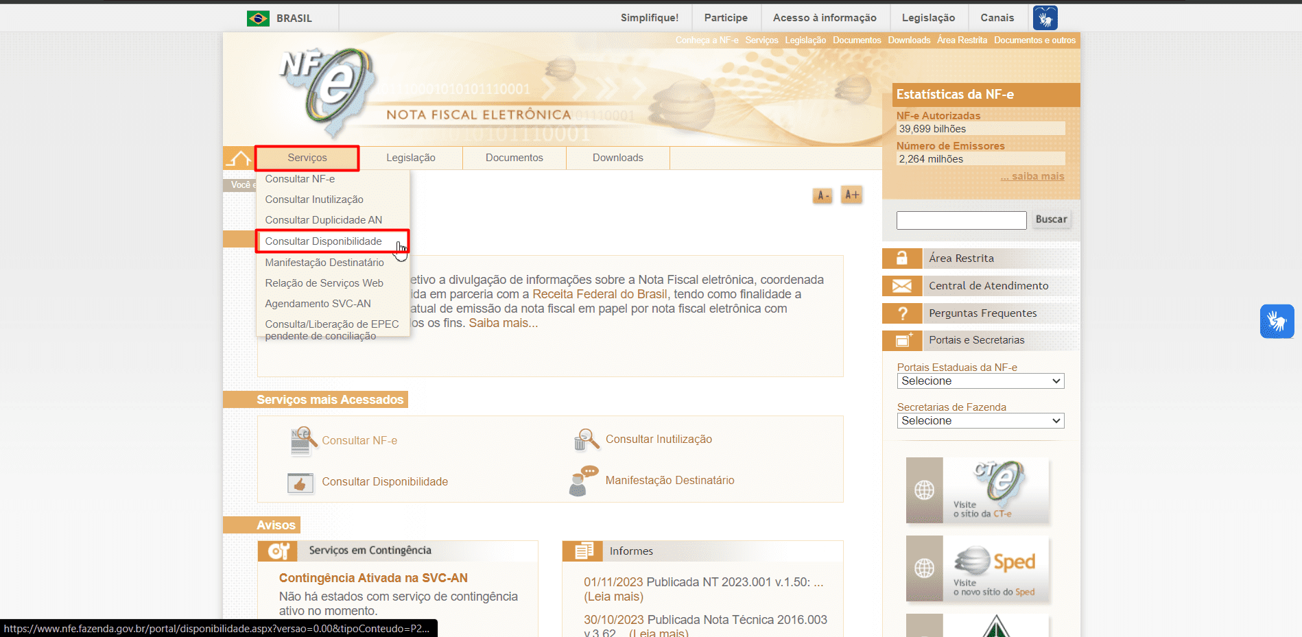 Como consultar a disponibilidade dos serviços da SEFAZ?